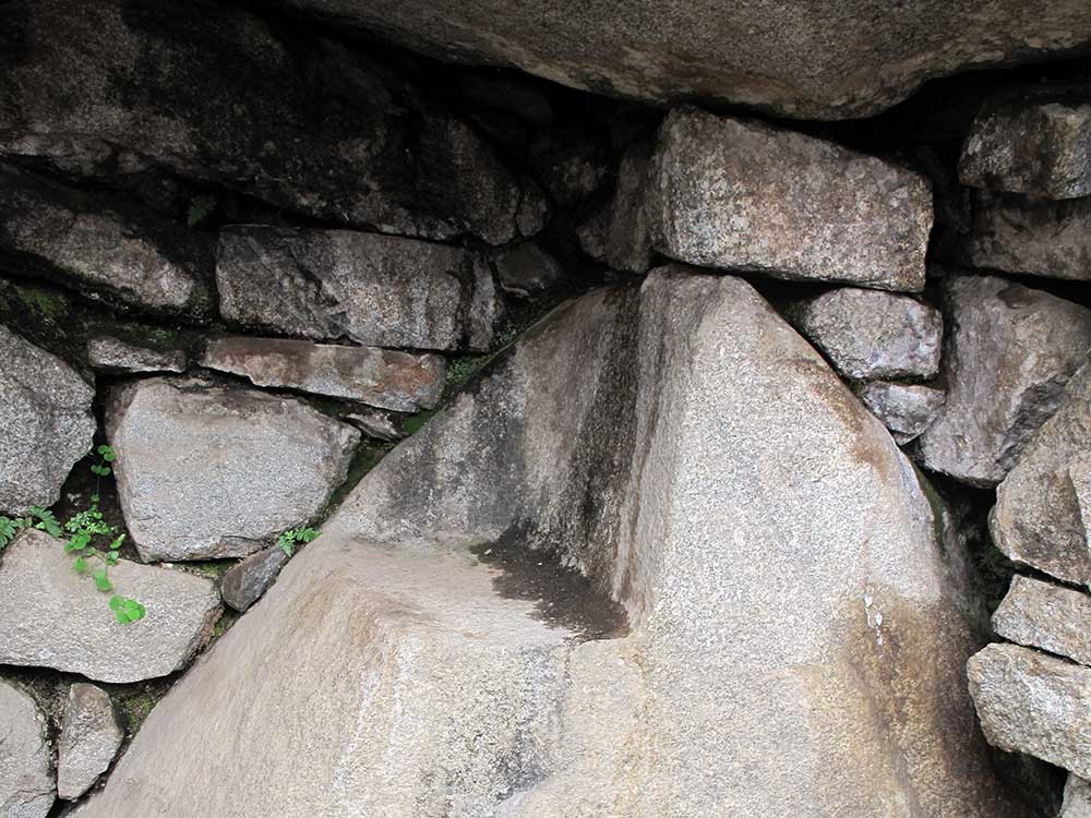 Finalement, l’utilisation d’une caméra endoscopique, introduite dans les remblais occultant l’entrée, confirme l’hypothèse selon laquelle les blocs de pierres et les gravas disposés à l’entrée de l’édifice n’avaient que la fonction de boucher un passage et non pas celle de soutenir les structures internes du bâtiment.